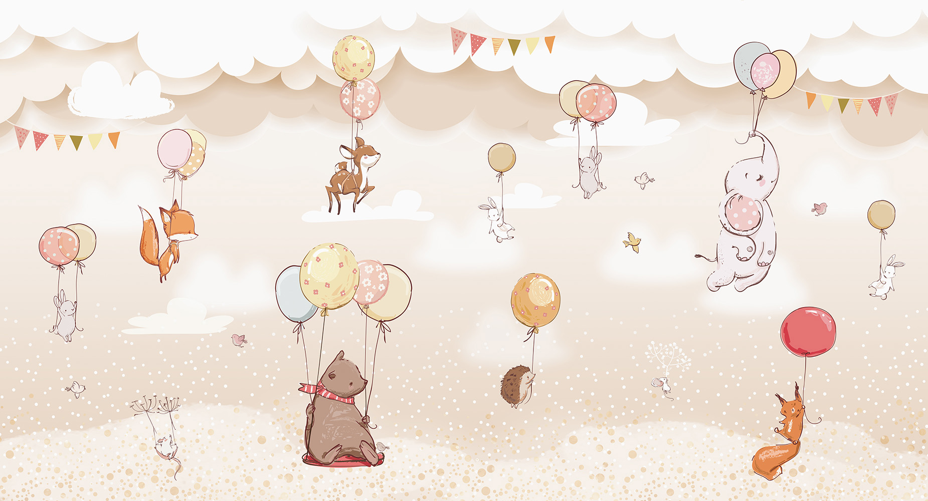 Фотообои T-342 "Животные с воздушными шарами 3" 500х270