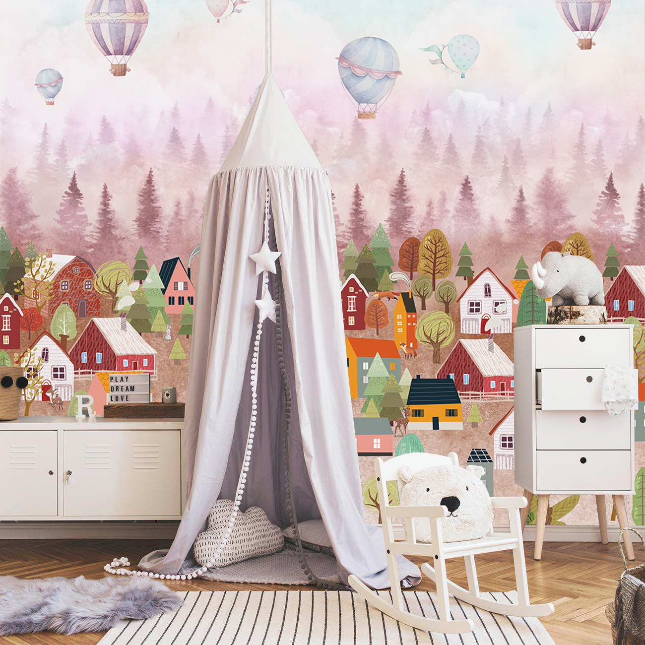 Описание Фотообои T-089 "Домики у леса" 300х270