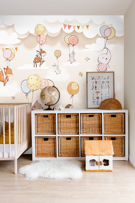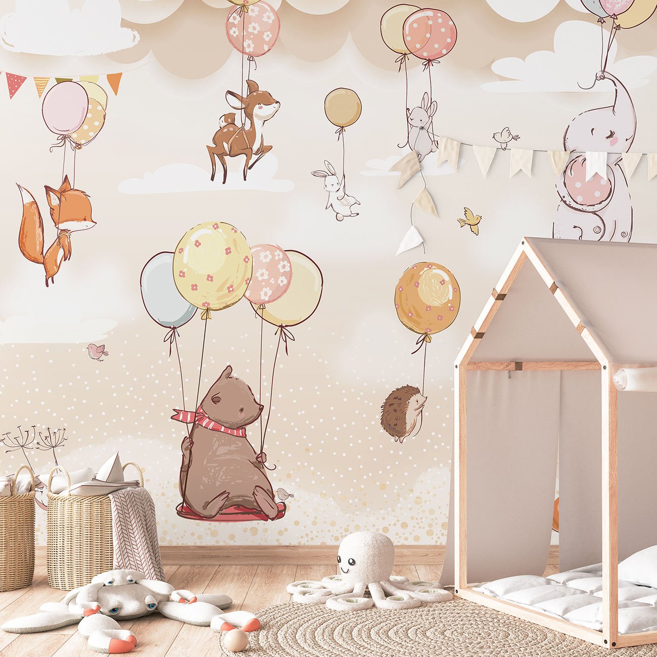 Фотообои T-099 "Животные с воздушными шарами" 300х270