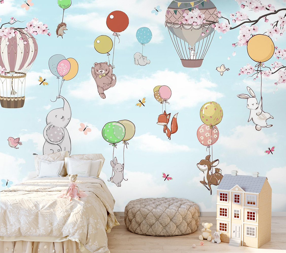 Фотообои Z-057 "Животные на воздушных шарах" 400х270