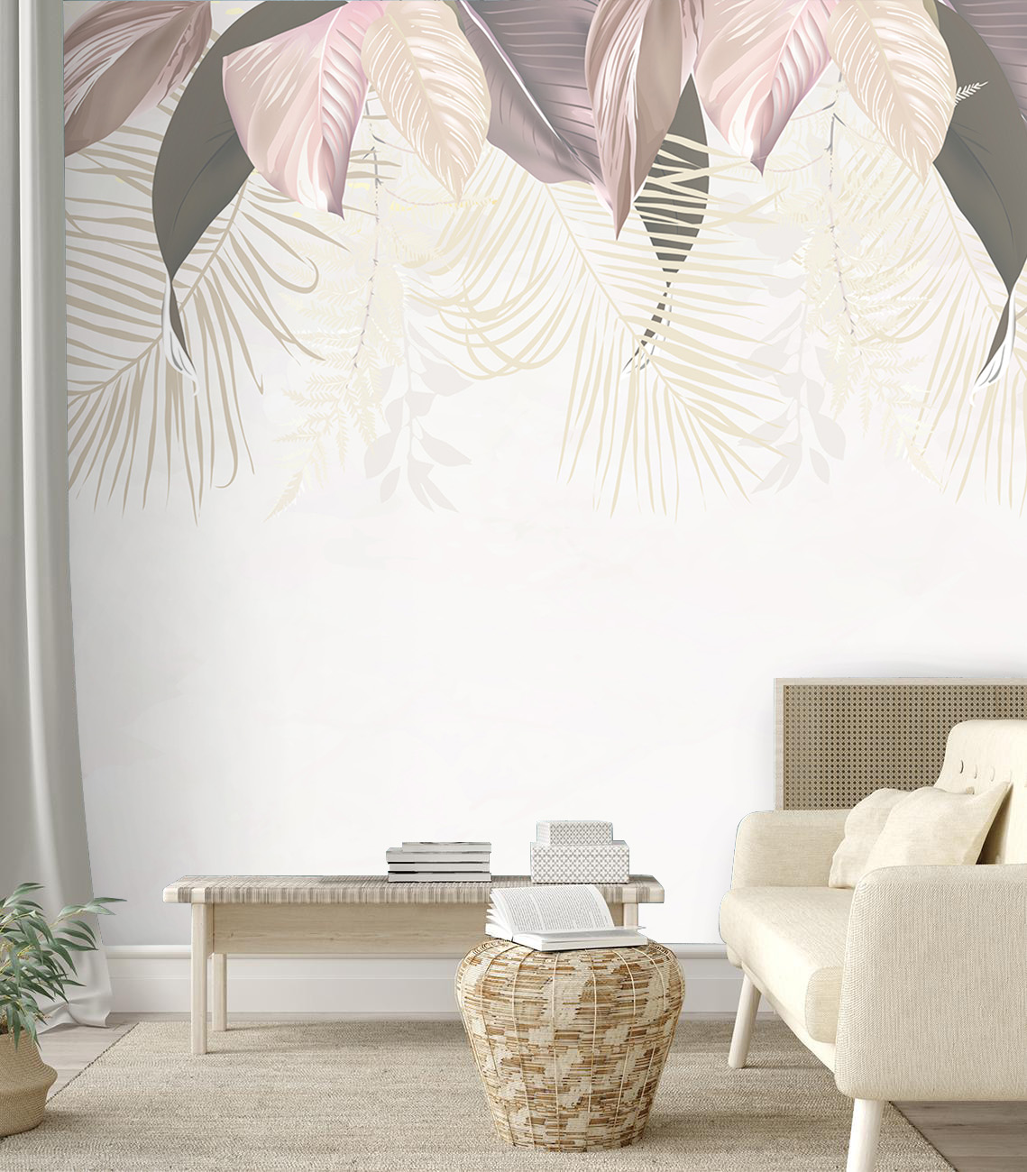 Описание Фотообои Z-302 "Розовые тропические листья" 300х270