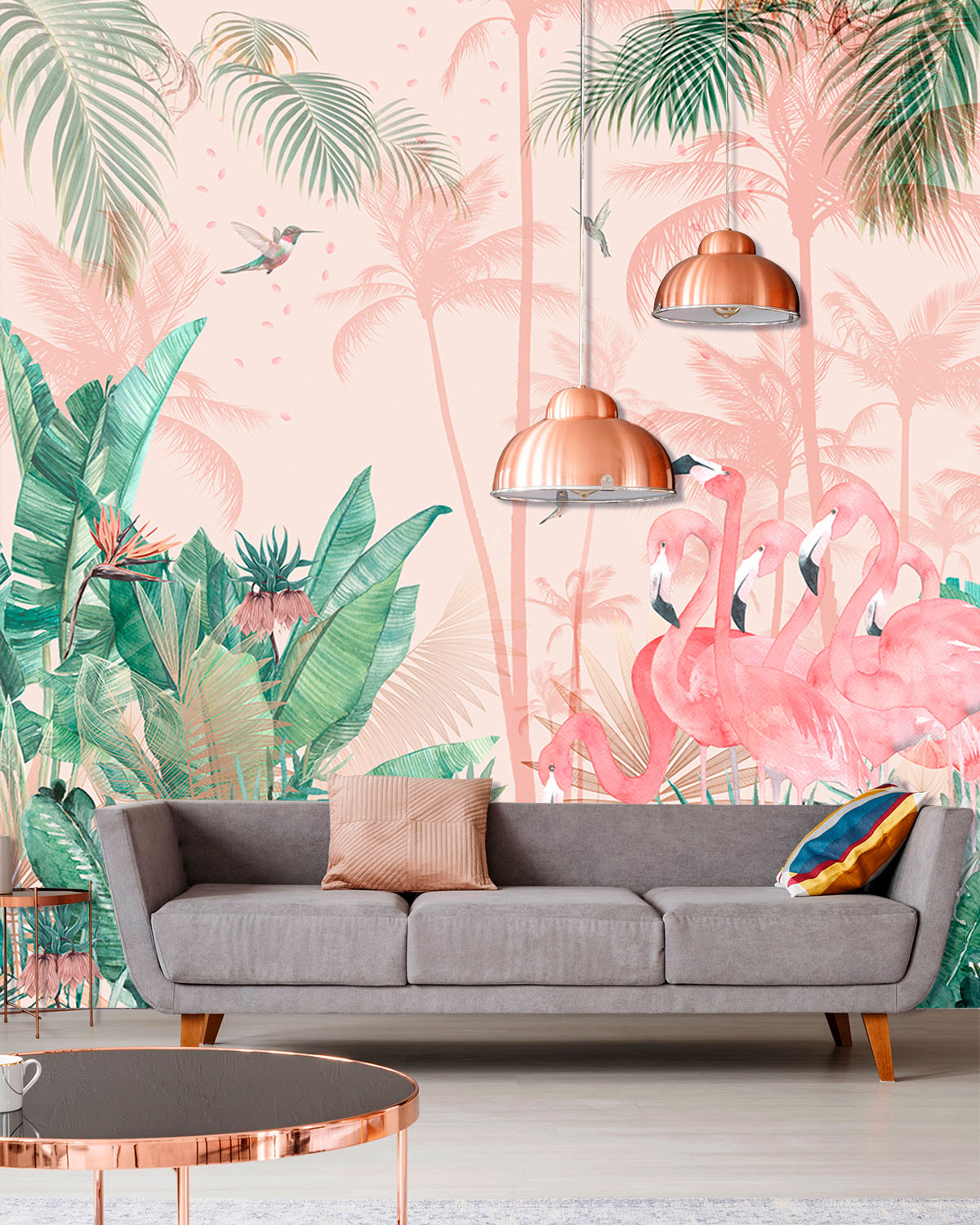 Описание Фотообои Z-303 "Розовые фламинго в тропиках" 300х270
