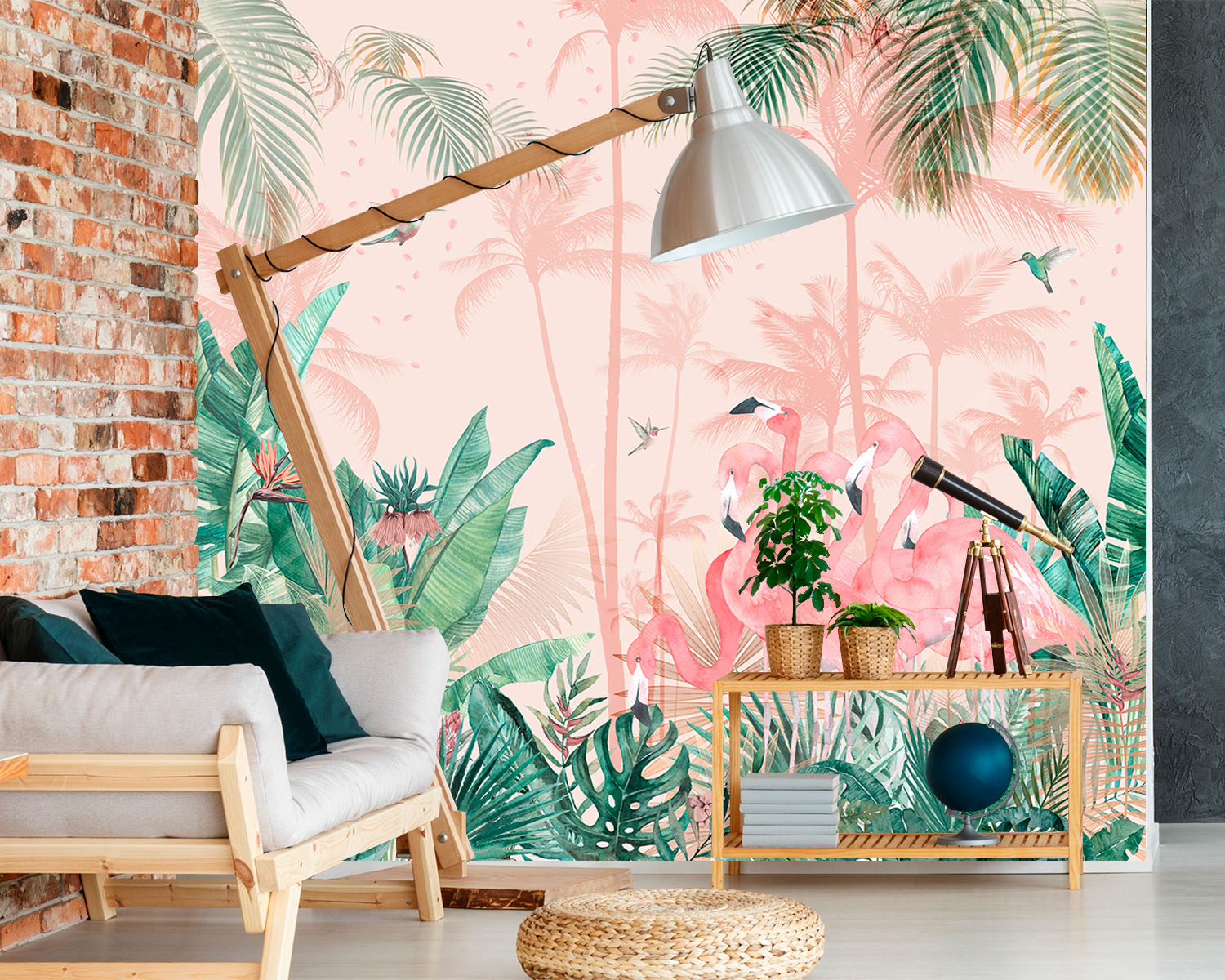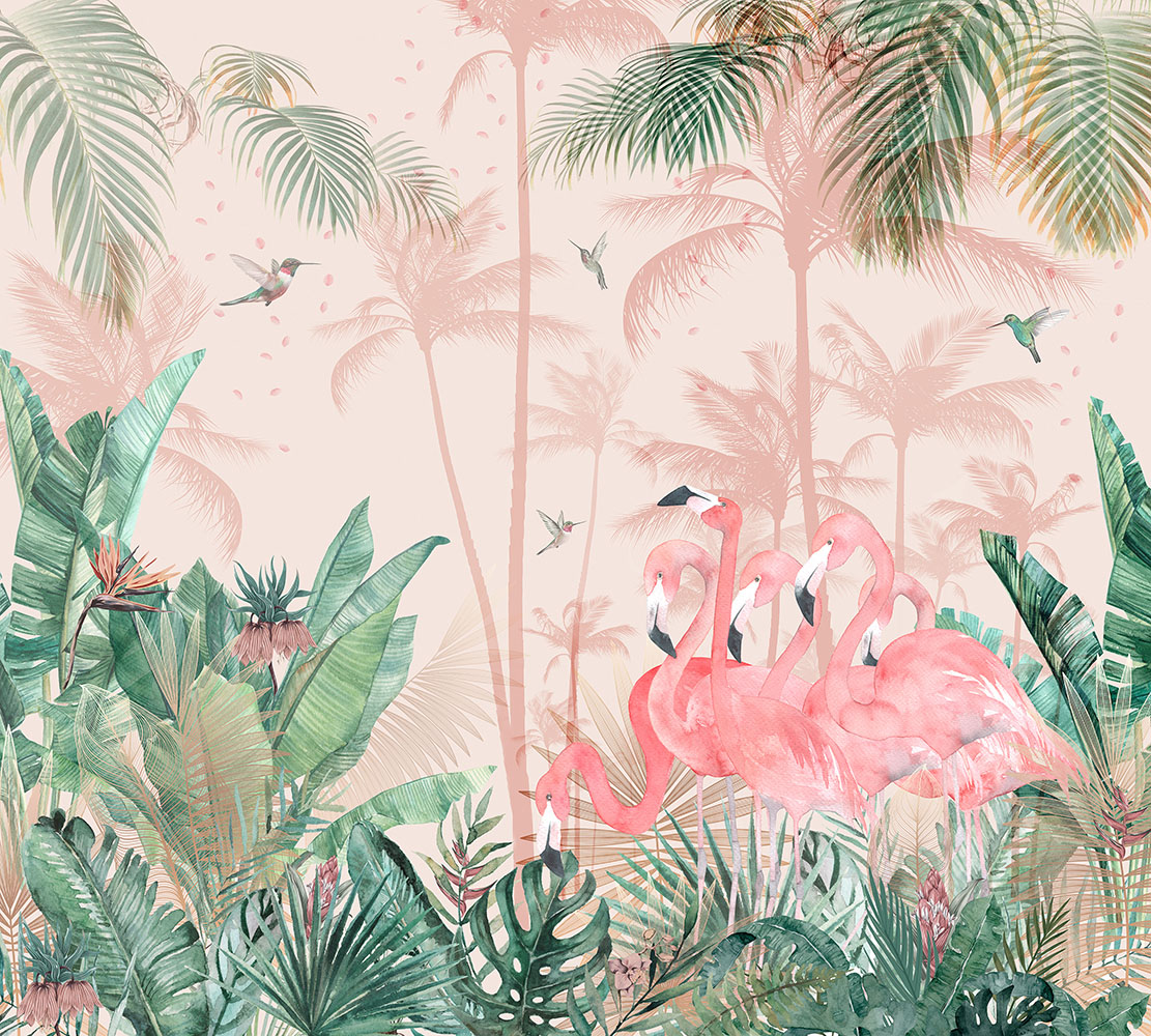 Фотообои Z-303 "Розовые фламинго в тропиках" 300х270