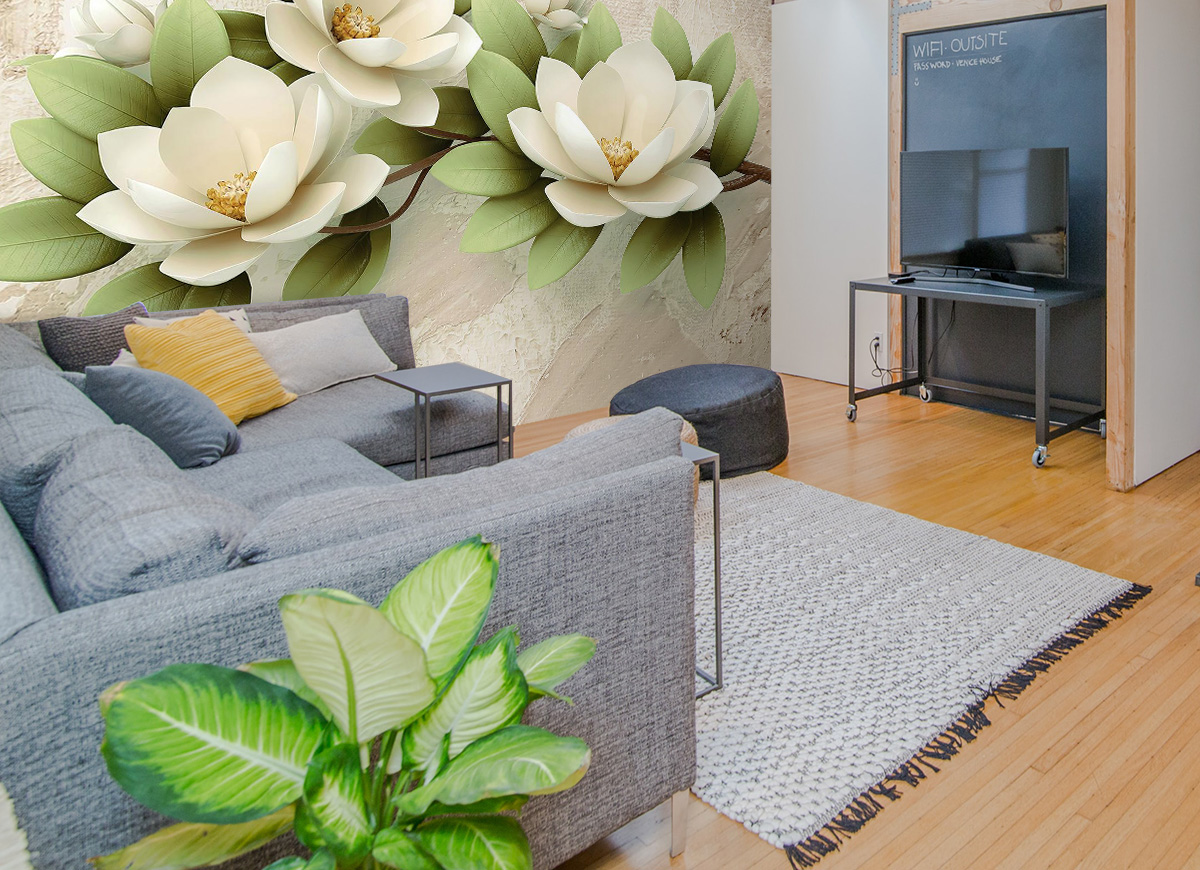 Описание Фотообои Z-337 "Магнолия с зелеными листочками" 400х270