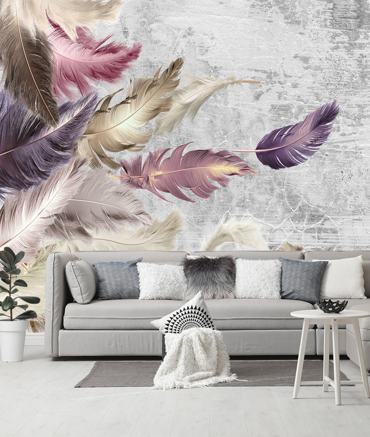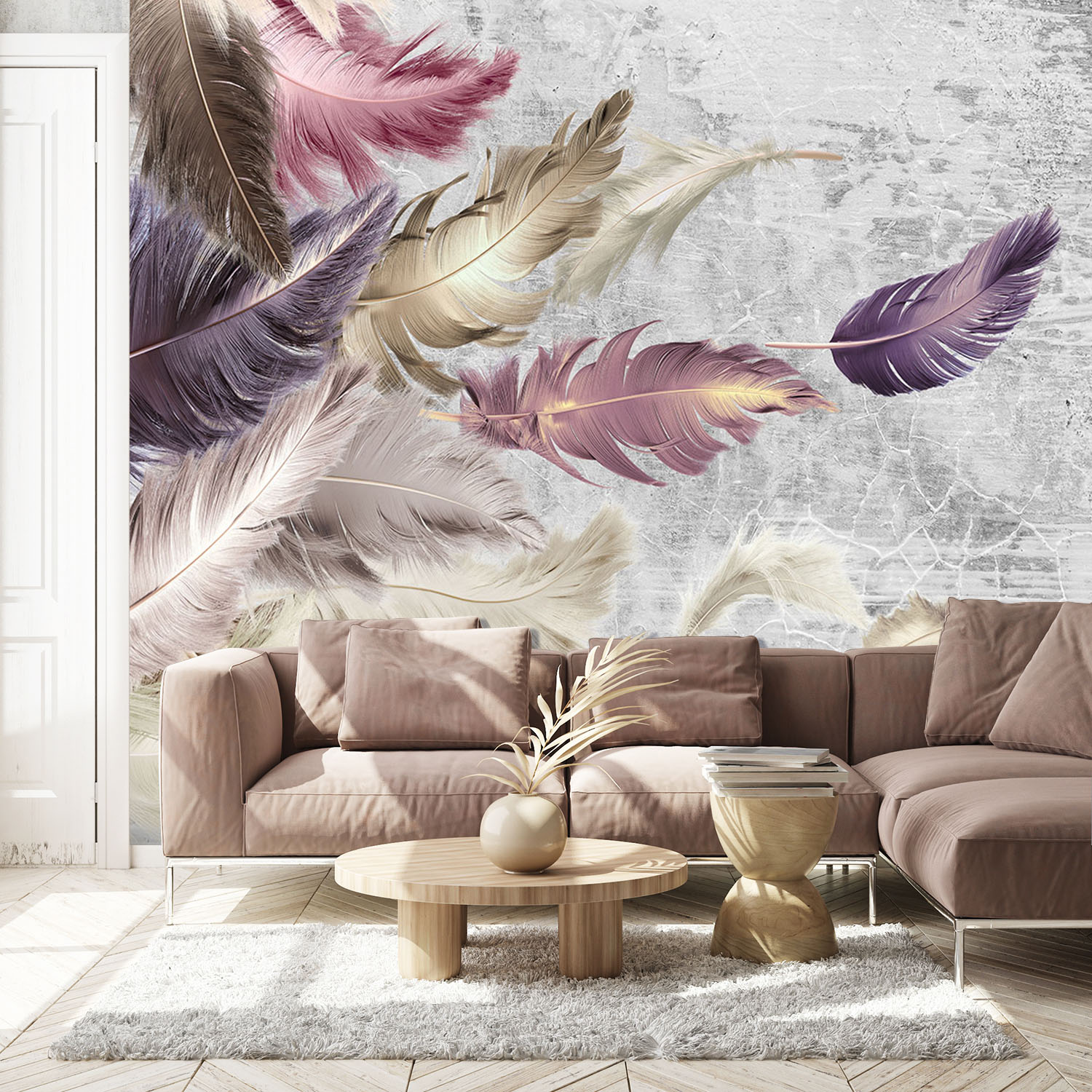 Фотообои Z-340 "Перья на фоне стены" 300х270