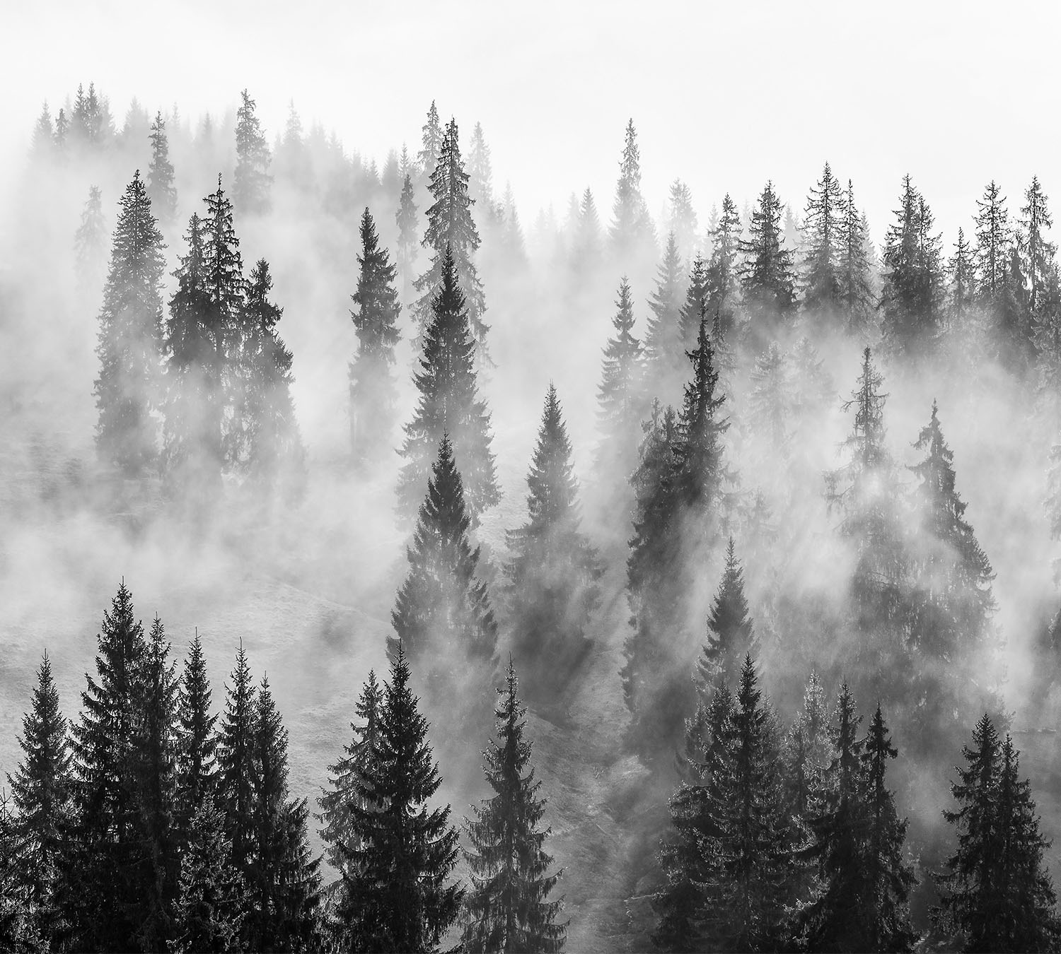 Фотообои Z-419 "Лес в тумане чб 2" 300х270 - Отзывы покупателей, пациентов, врачей