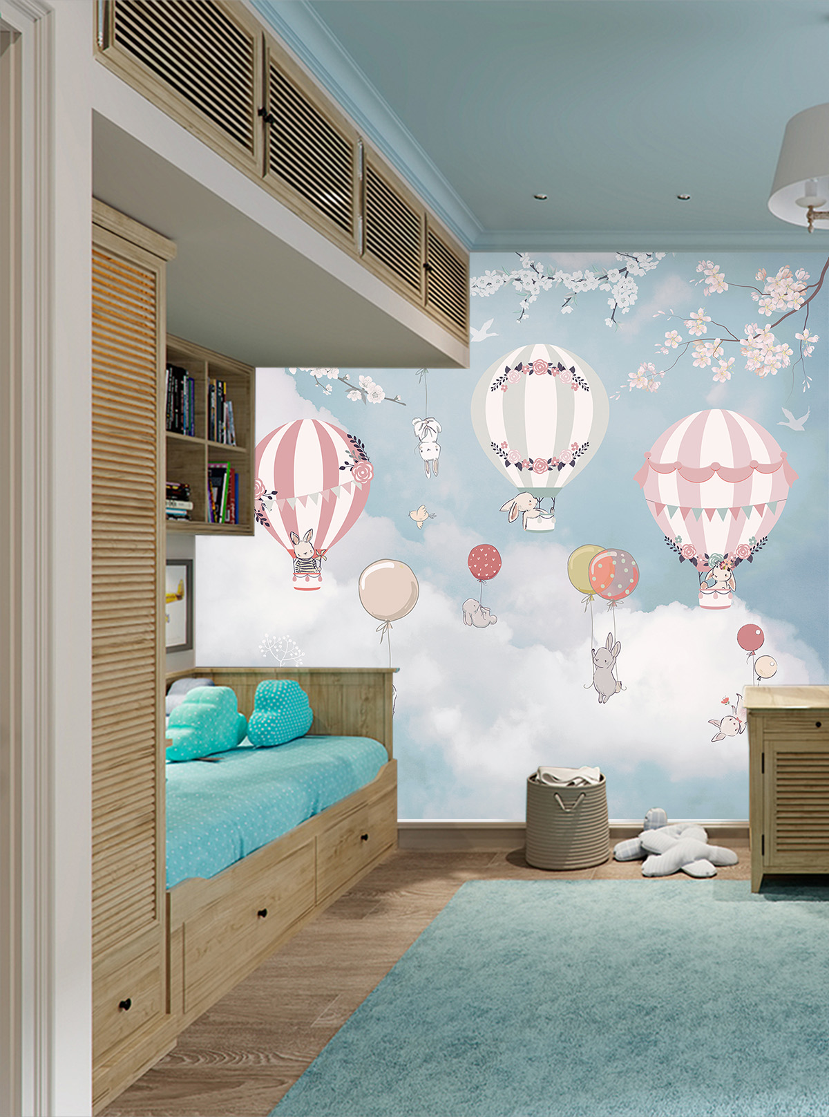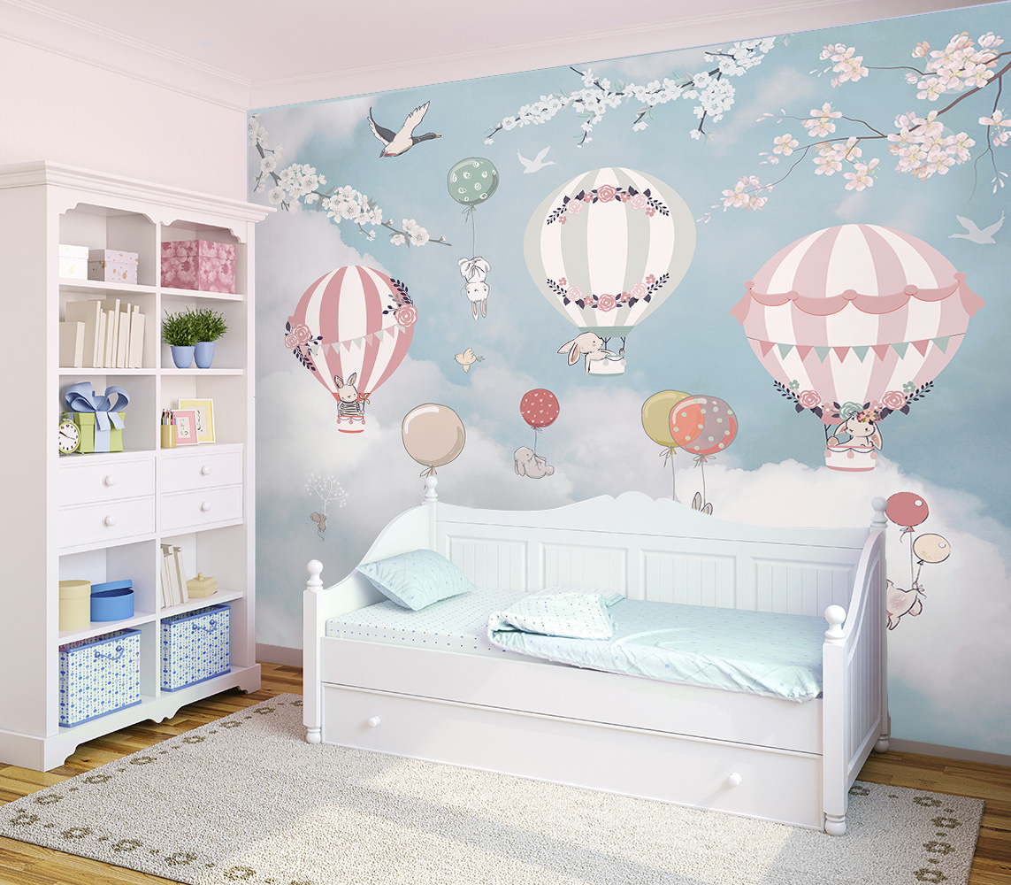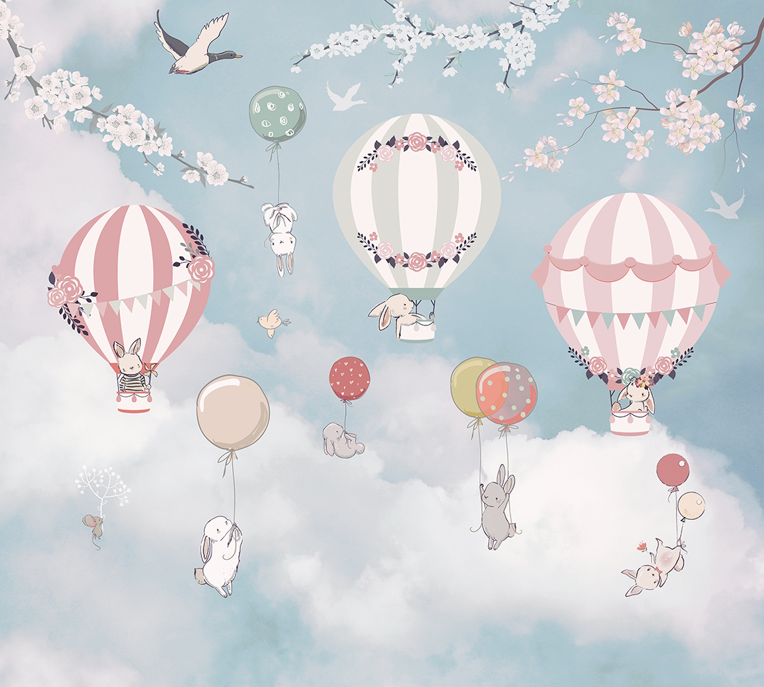 Описание Фотообои Z-062 "Зайчики в небе" 300х270