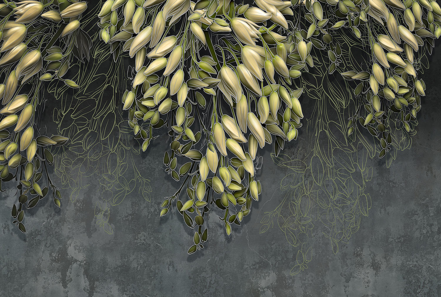 Фотообои F-197 "Зелёные цветы на бетонной стене" 400х270