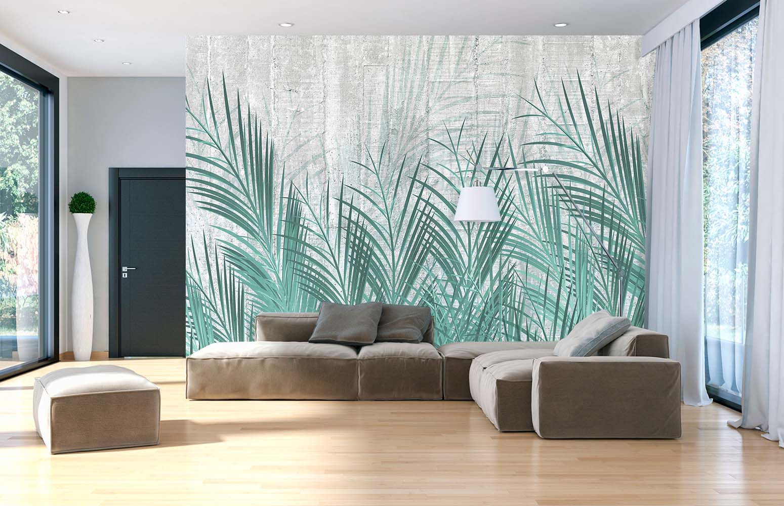 Фотообои F-091 "Зелёные листья на бетоне" 400х270
