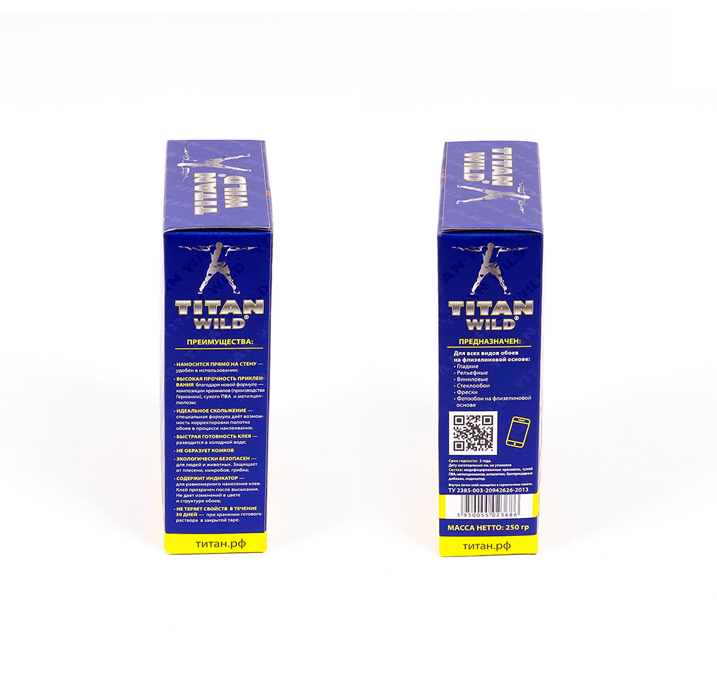 Наклеивайте на стену в очерёдности указанной на этикетке. Приложите фрагмент к стене и аккуратно разгладьте, выровняв и отцентрировав полотно по разметке. Для разглаживания рекомендуется использовать прижимной резиновый валик для обоев. Остатки клея удалите влажной тканью, излишки полотна срежьте острым ножом по линейке. Не допускается использование металлических и пластиковых шпателей! Следующий фрагмент наклейте встык. Аккуратно разгладьте стыки полотен без сильного нажима и трения, чтобы не повредить края.Клей Titan Wild обойный флизелиновый 600 гр - Характеристики